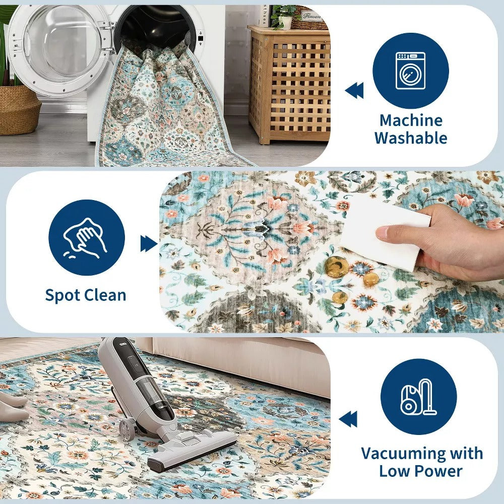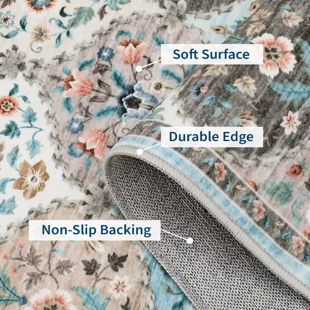 5x7 Floral Transitional Washable Rug