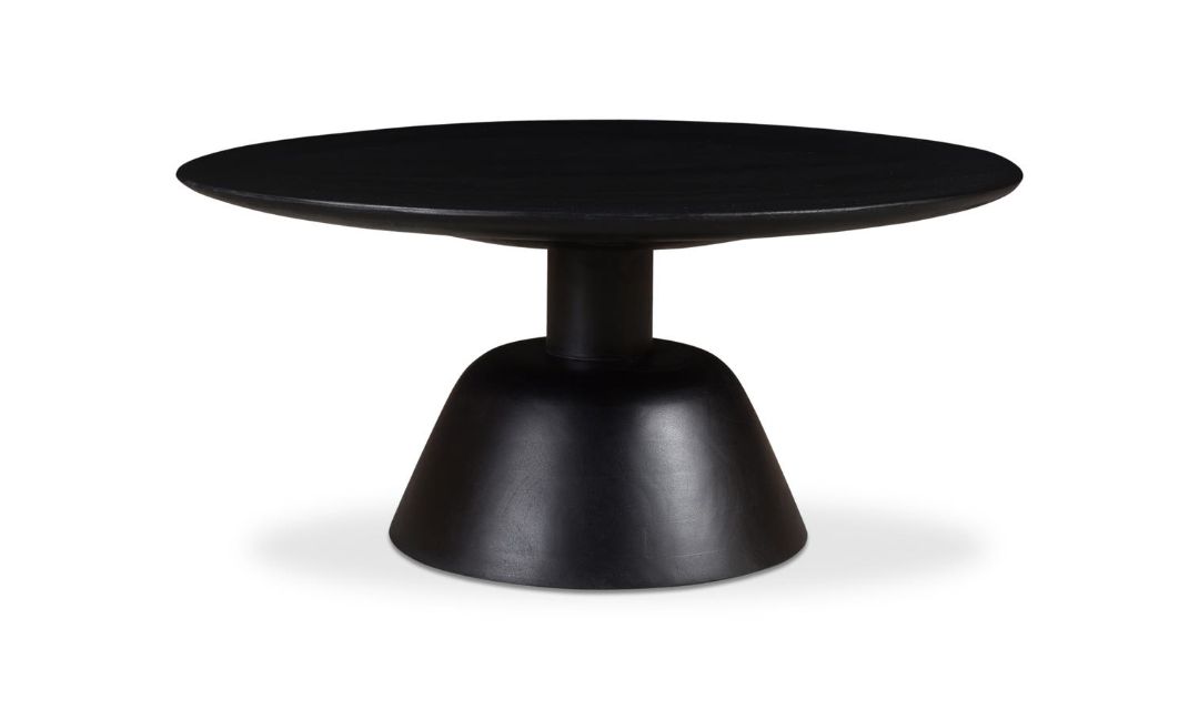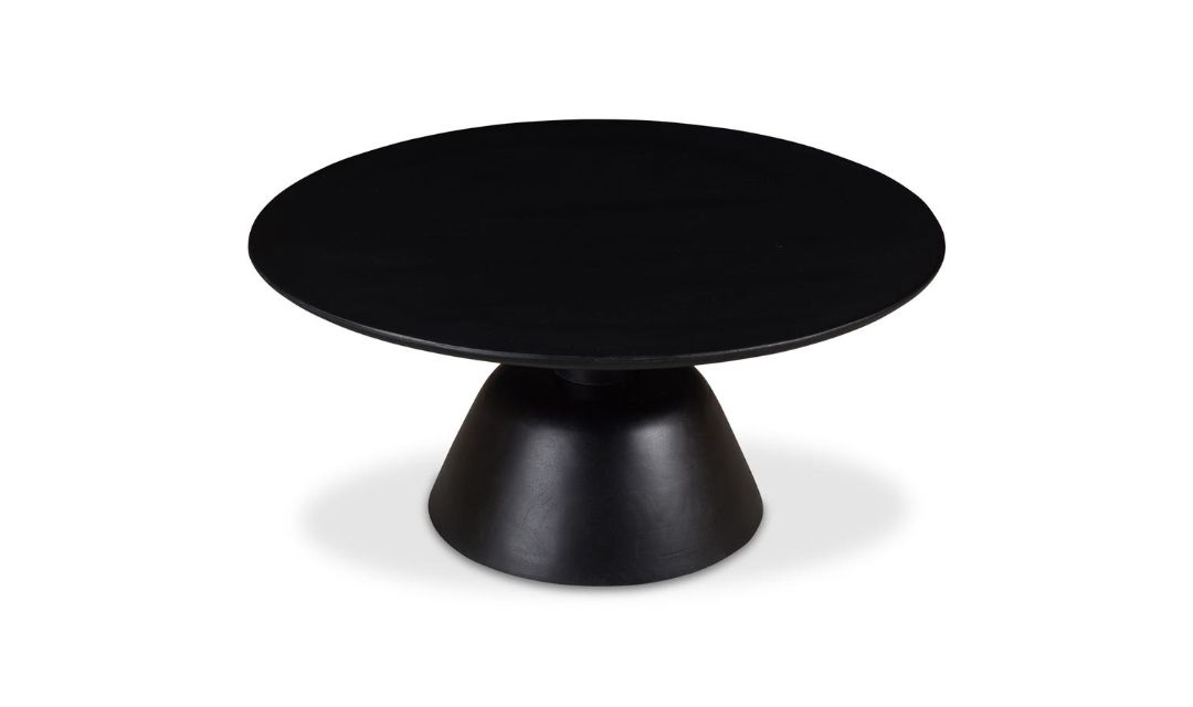 Sculpted serenity. Built from solid mango wood, the Nels coffee table puts the materials front and center, serving as a natural showcase for the woodgrain. Its tastefully sculpted form features a broad base and a simple round tabletop, a pedestal for beautiful happenings. For a perfectly simple take on contemporary design, look to Nels.