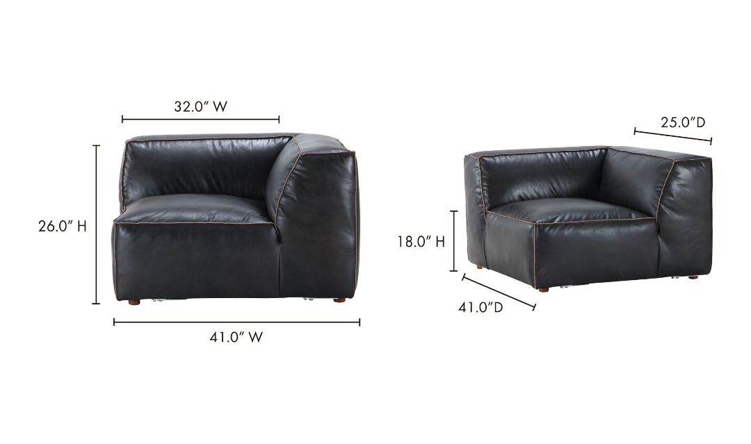 The Luxe collection features ever-so-soft, 100% top-grain buffalo leather upholstery that will age into a beautiful patina with reverse stitching accents to add an artisanal touch. With an emphasis on its plump, slightly rounded silhouette, this modular sofa’s feather and fiber-filled cushions are an oasis of ultra-soft luxury.
